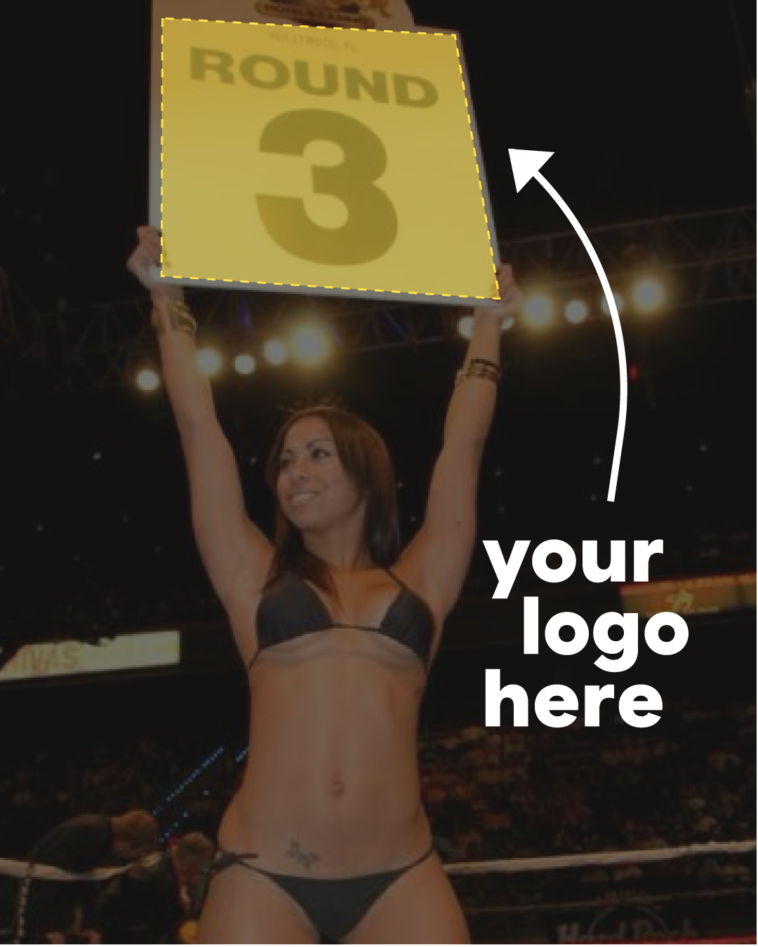 📍 4 professional ring girls will walk through the venue holding branded boards with your logo, booth number, or any custom design of your choice!