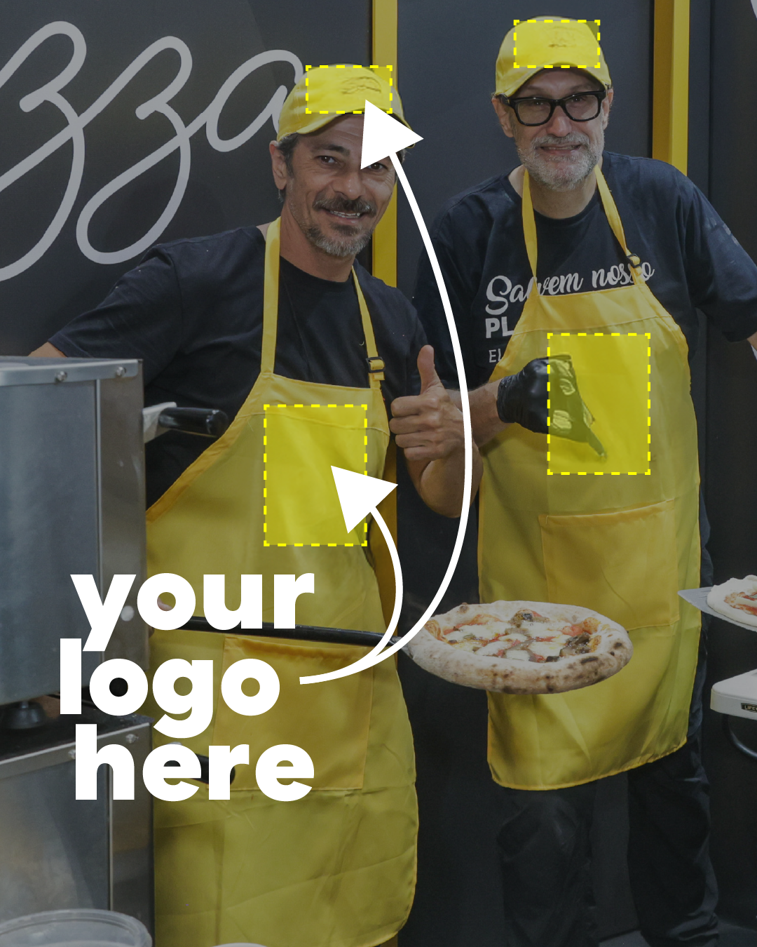 📍 Your logo on uniforms & plates at the Pizza Corner, serving delicious pizza all day!