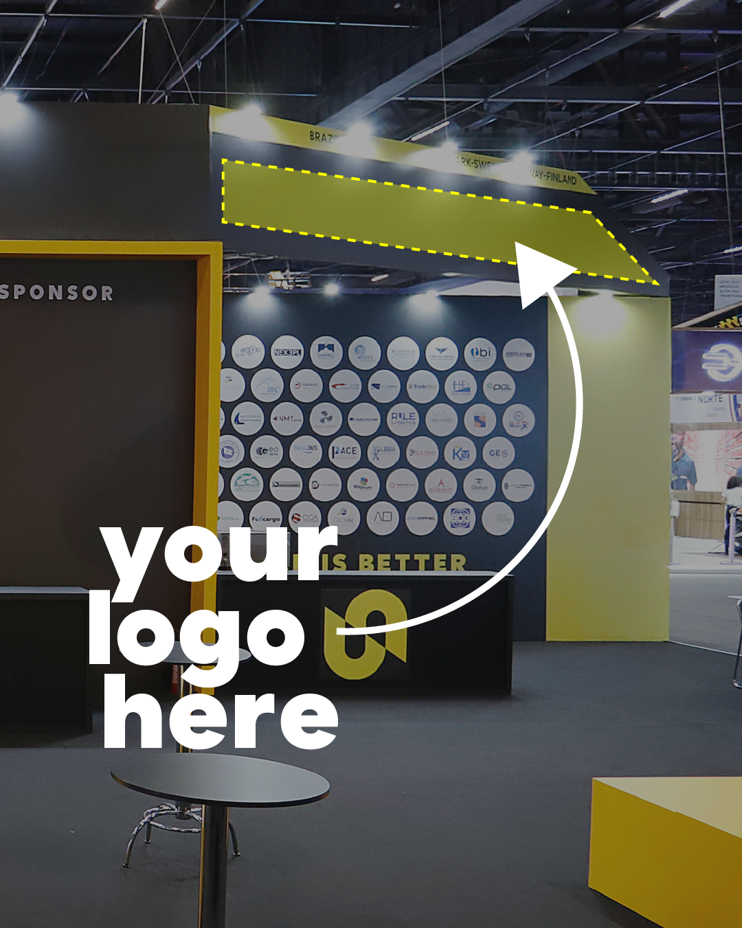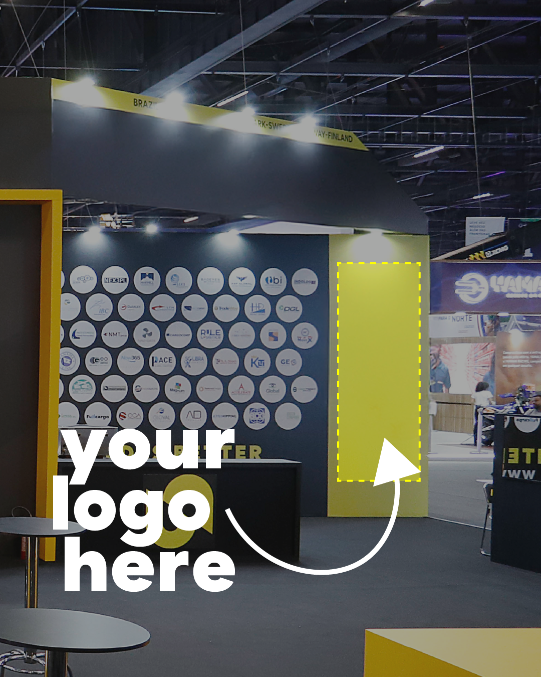 📍 Your logo on the main booth border (3x1 meters) – the perfect backdrop for ultimate visibility.